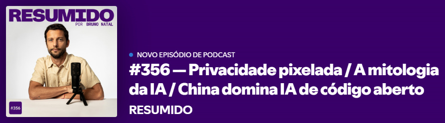 No RESUMIDO #356: a privacidade não volta mais, arte sem tutor, aceleracionismo molda o Vale do Silício, China domina IA de código aberto e muito mais! Escute o episódio na sua plataforma de áudio predileta!